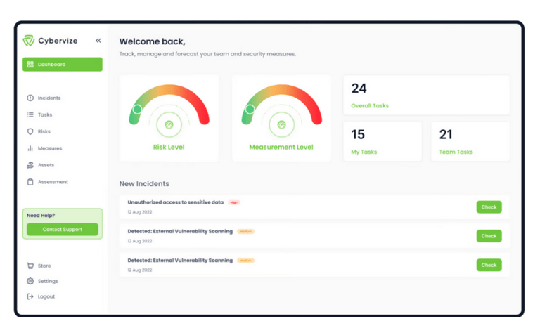 Cybervize offers an intelligent, AI-powered platform that allows companies to manage their cybersecurity in a targeted and efficient manner – all in one central location that ensures optimal control and protection.