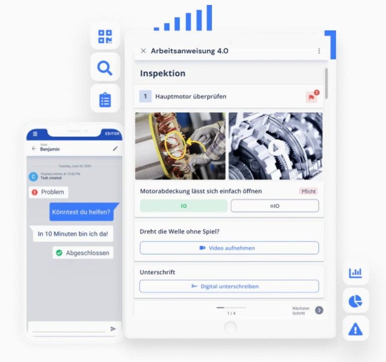 Operations1 is the ideal Connected Worker Platform for the industry. With Operations1, you digitize your employee-led production processes end-to-end: from activity planning and the supply of knowledge to intuitive process guidance, documentation, live analysis, and collaborative incident management.